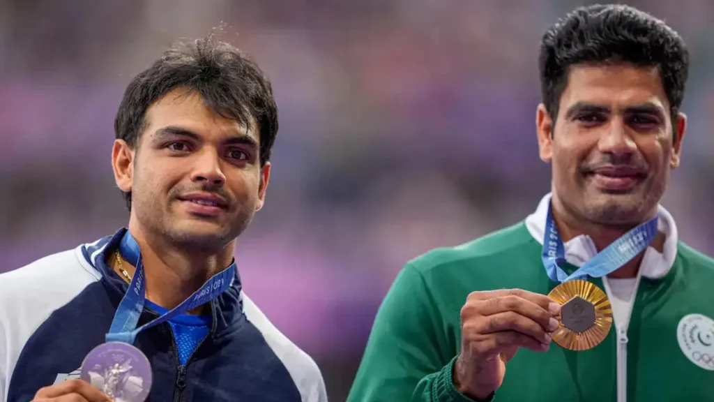 পাকিস্তানের জ্যাভলিন থ্রোয়ার আরশাদ নাদিমের সঙ্গে ভারতের সোনার ছেলে নীরজ।