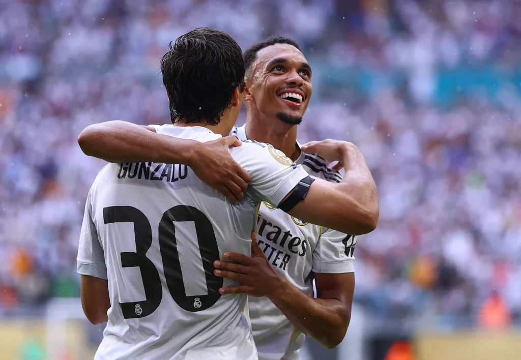 গোল করিয়ে আর্নল্ড জড়িয়ে ধরলেন গোলদাতা গার্সিয়াকে।